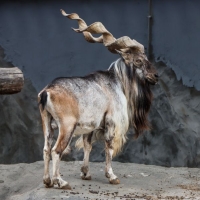 Винторогий козёл получил своё название за спирально закрученные рога. У самцов, кроме огромных рогов, есть большая борода и подвес на шее и груди.